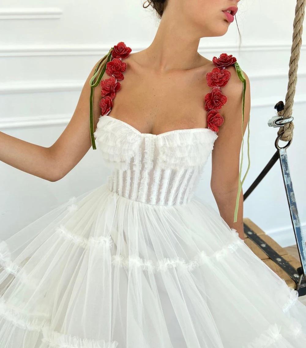 Женское ТРАПЕЦИЕВИДНОЕ платье из тюля, белое длинное платье с 3D красными цветами в садовом стиле для торжественных мероприятий Вечерние