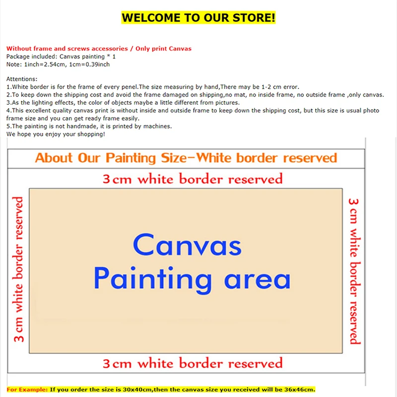 Product SizeEach Canvas Painting Has 3cm Extra White Edg