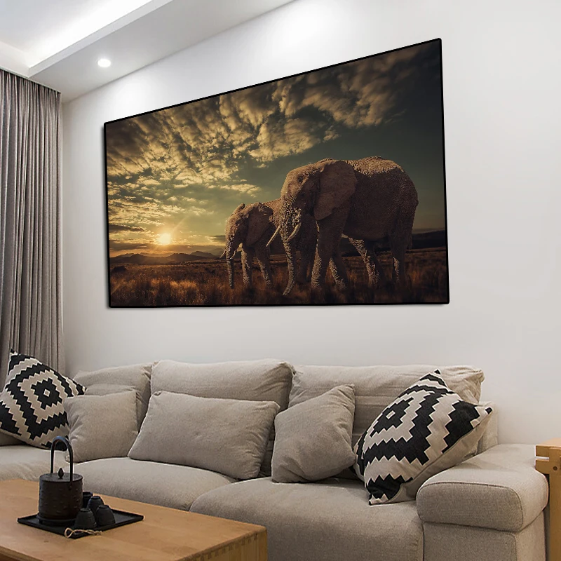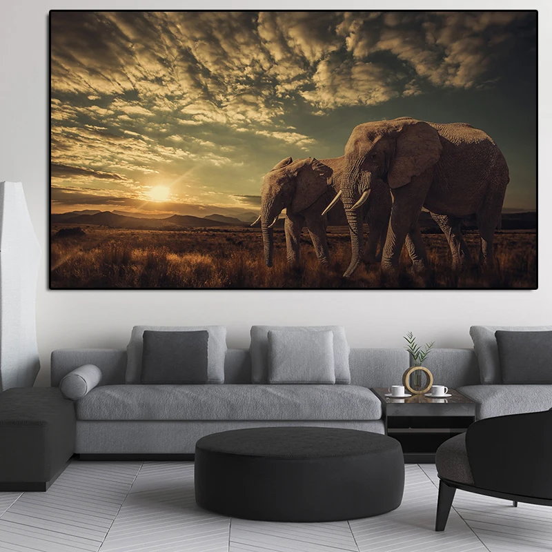 Картина на холсте, африканская Саванна, два слона, настенные картины, скандинавский стиль, декор для гостиной, плакаты и принты