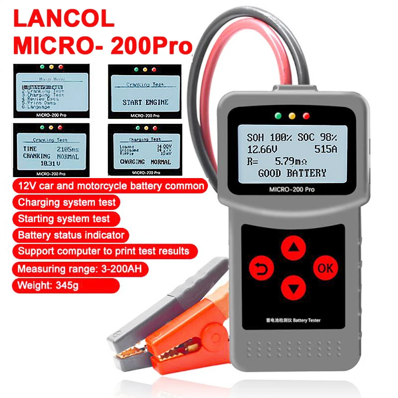 Устройство для проверки автомобильных аккумуляторов MICRO-200 PRO, 12 В, 24 В, многоязычный цифровой Анализатор автомобильной батареи AGM EFB Gel для автомобиля, мотоцикла