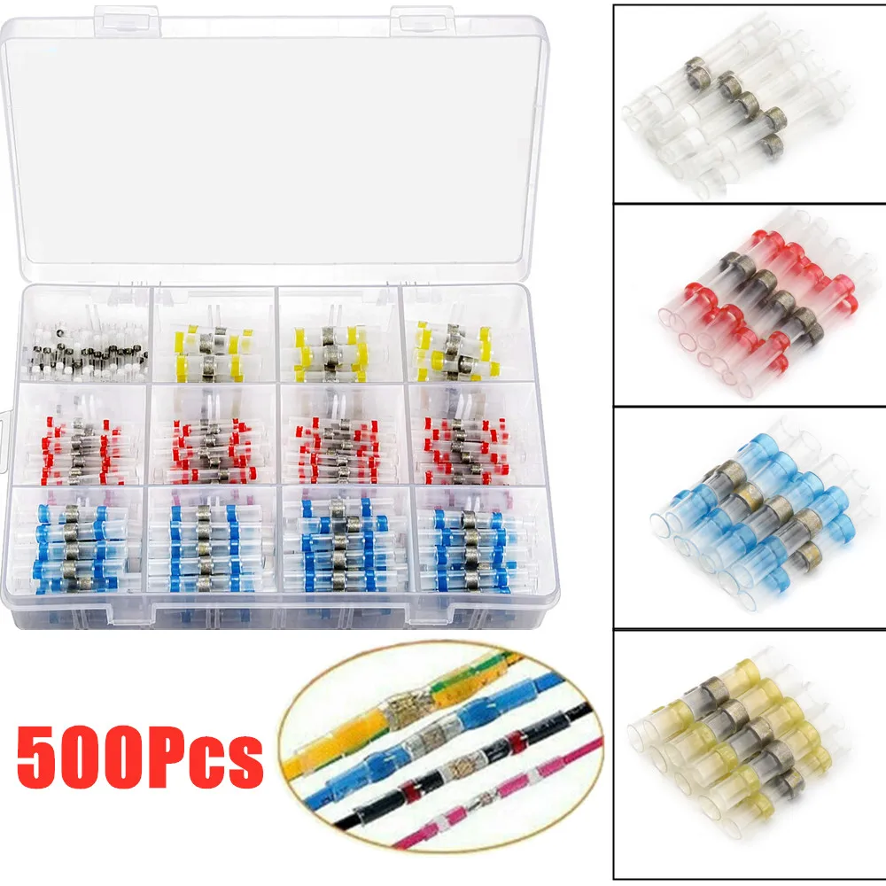 Термоусадочные Соединительные Клеммы, 500 шт., водонепроницаемая трубка для пайки, изолированные стыковые соединители для электрического провода, набор в ассортименте