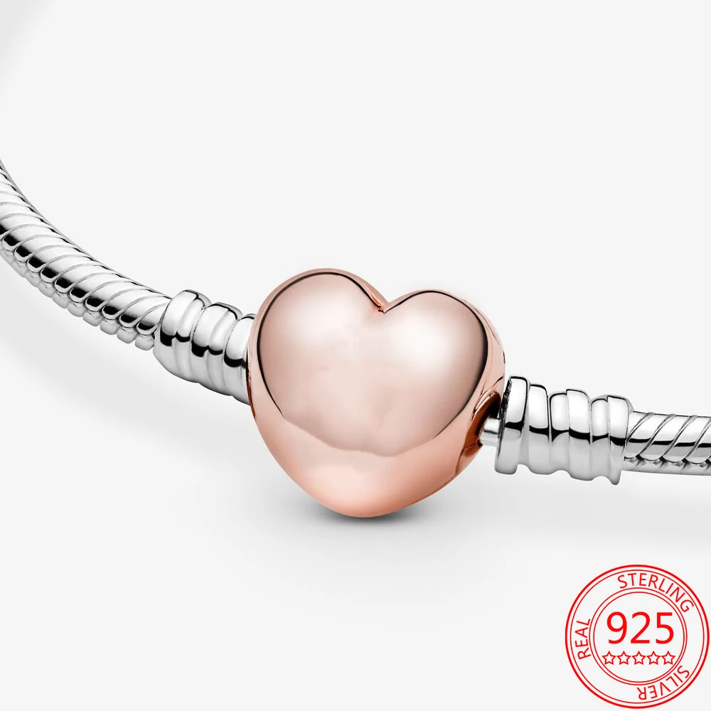 Лидер продаж, классический Серебряный браслет-цепочка в виде змеи с подвеской в виде сердца