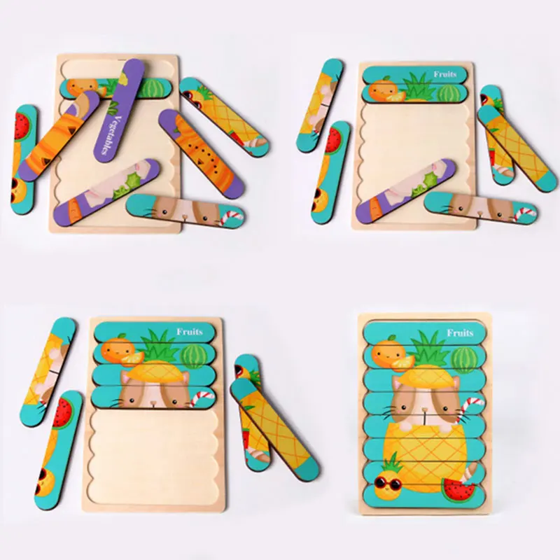 Детские Монтессори игрушки животные 3D деревянная головоломка Двусторонняя полоска головоломка Расскажите историю укладка Пазлы Развивающие игрушки для детей