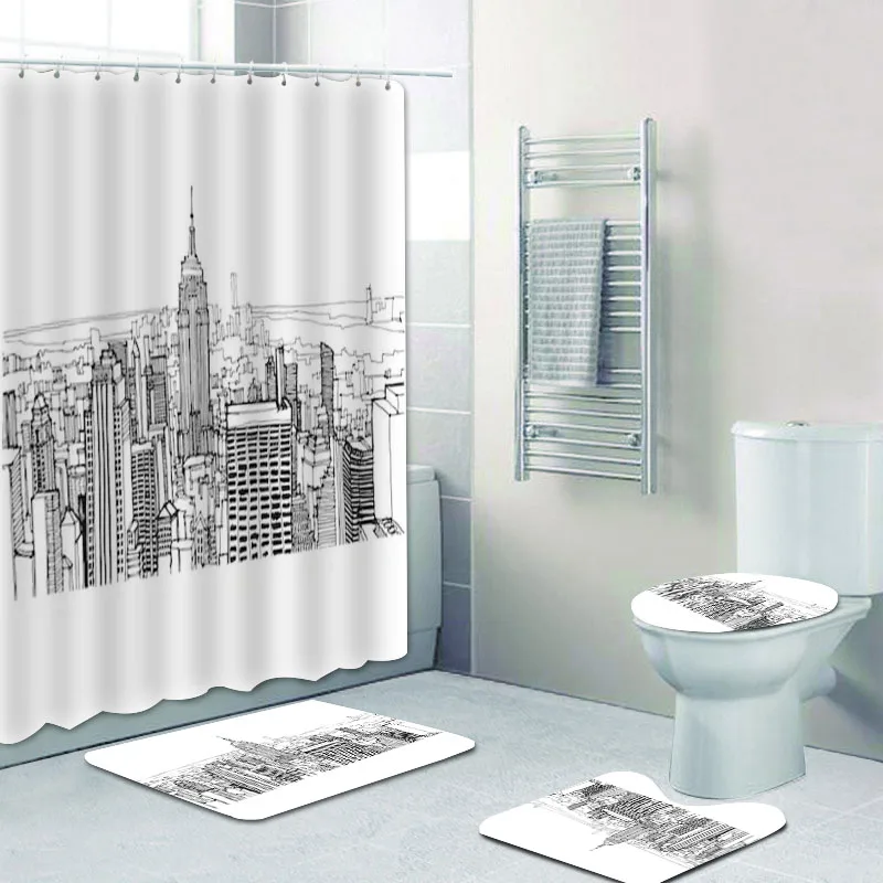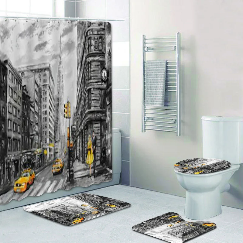 Занавеска для душа с изображением Нью-Йорка, в современном стиле, для ванной комнаты, коврики, ковер, картина