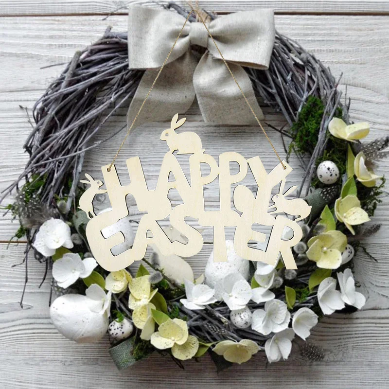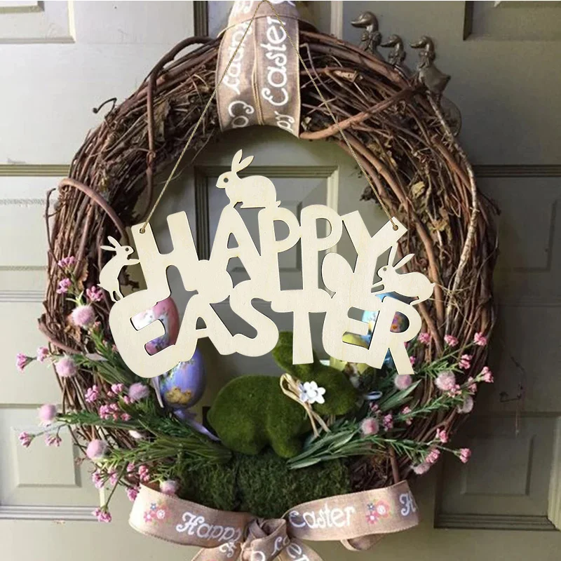 Счастливая Пасха, подвесная вывеска на дверь, деревянное пасхальное яйцо, кролик, Кролик для домашнего декора, Пасхальный венок, товары деревянные изделия орнаменты