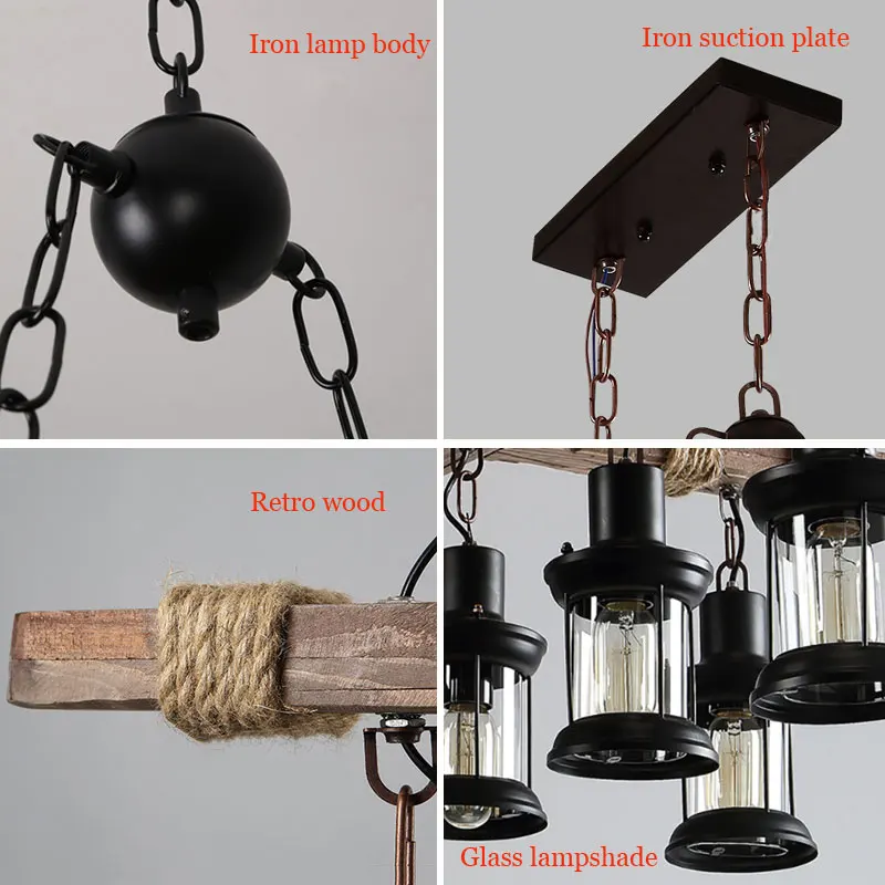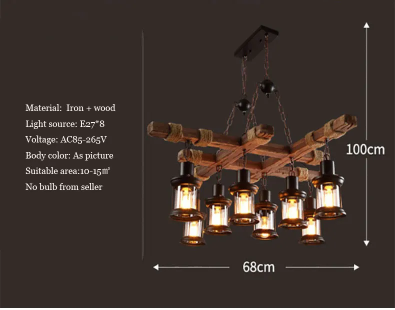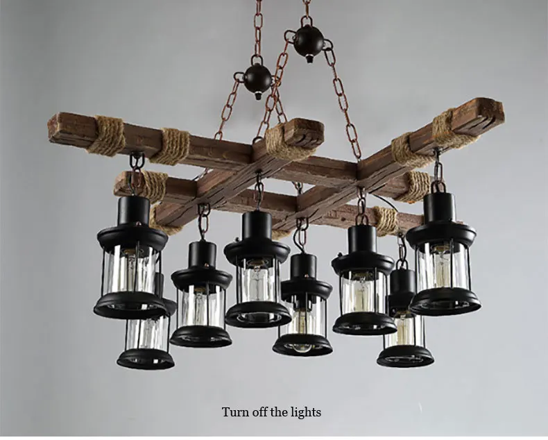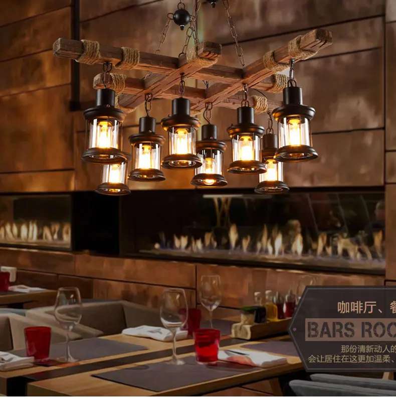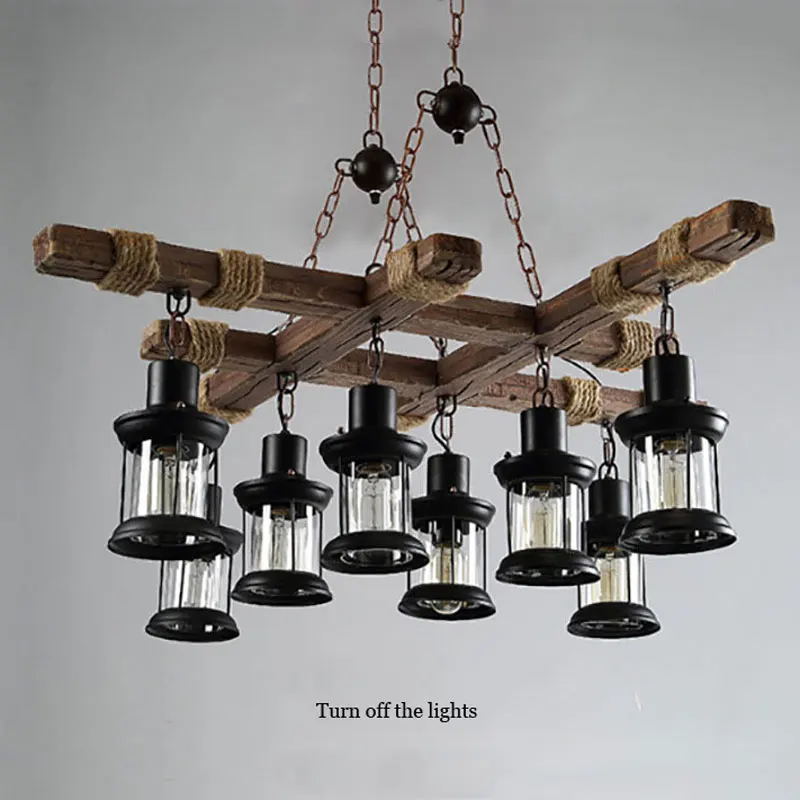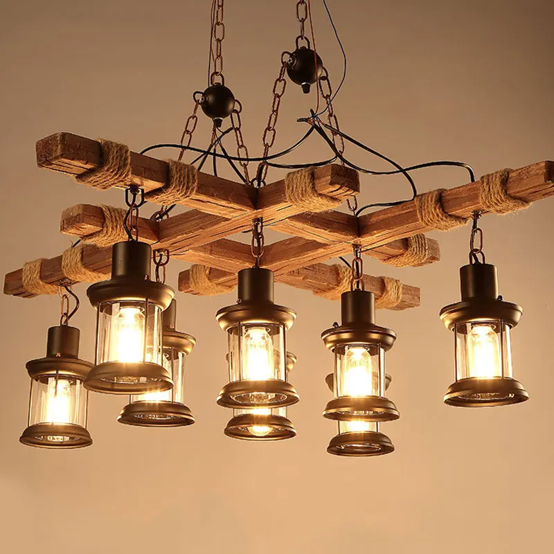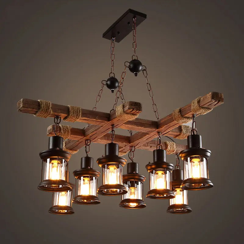 Винтажная деревянная люстра с 8 лампами в стиле ретро, для кафе, бара, магазина одежды, стеклянный подвесной светильник в стиле лофт