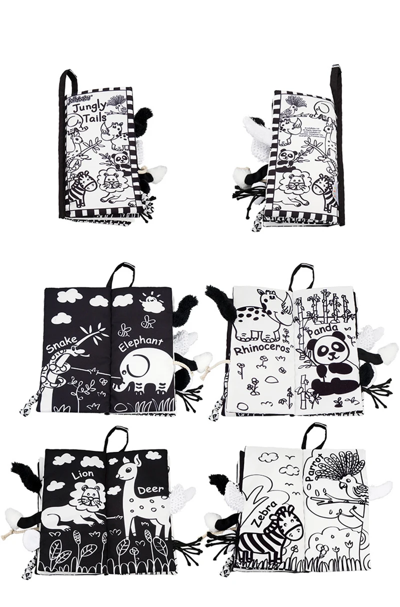 Детская книжка-погремушка по методике Монтессори, черно-белая, развивающая, сенсорная игрушка для малышей, книга из ткани, игрушки