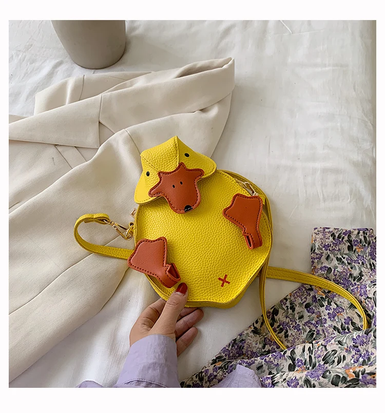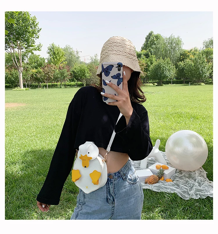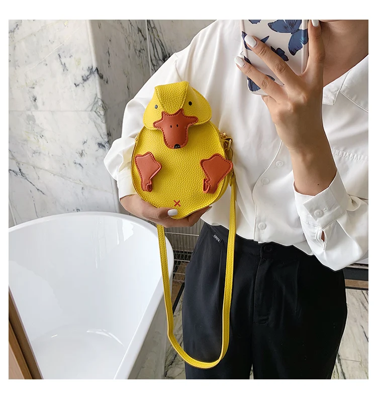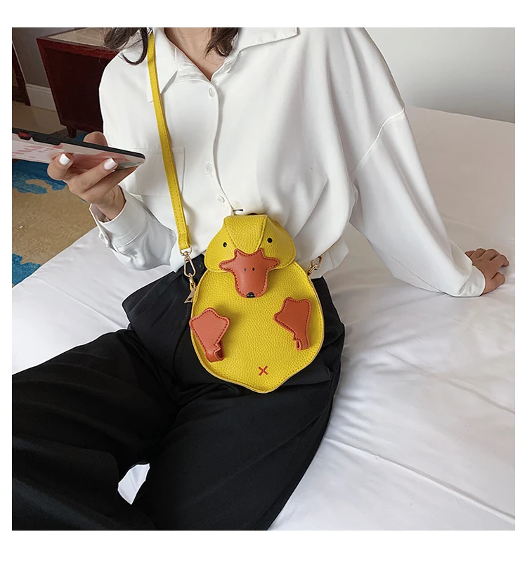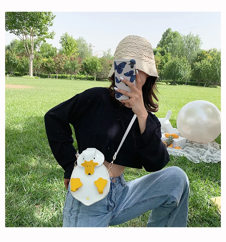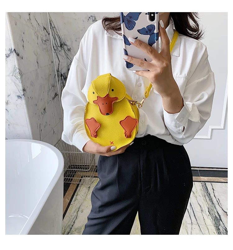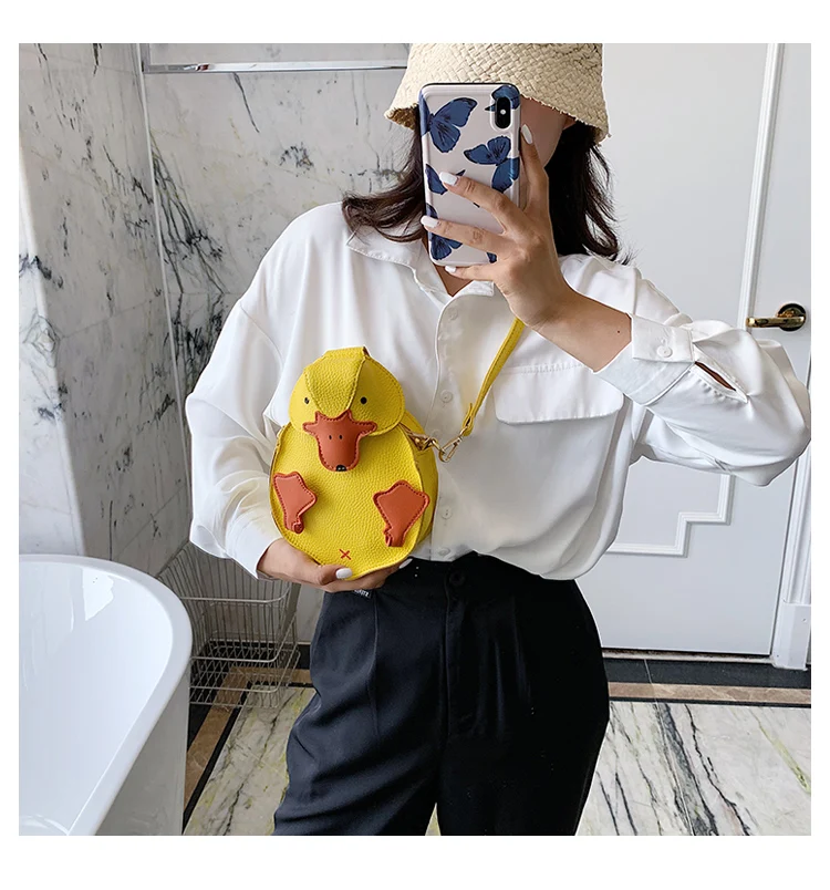 Сумка кросс-боди Женская из экокожи, милая модная сумочка на плечо с утенком, клатч для девушек, цвет белый и желтый, 2021