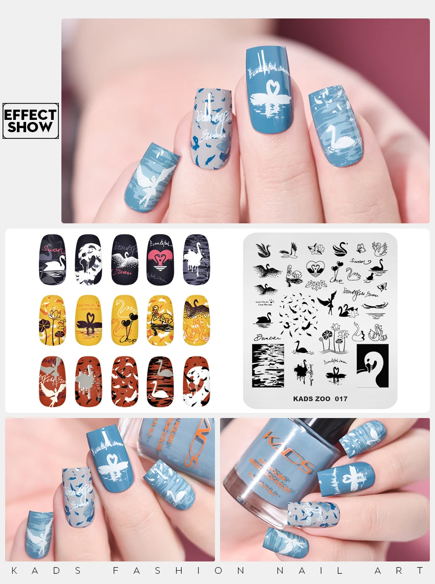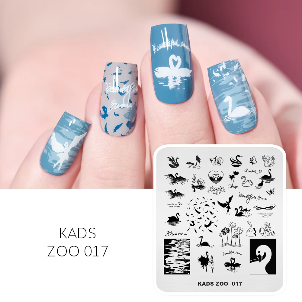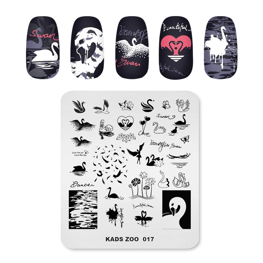 KADS пластина для стемпинга для нейл-арта Zoo 017 шаблон штампа для ногтей Лебединое озеро перо дизайн изображения украшения ногтей трафарет инструмент