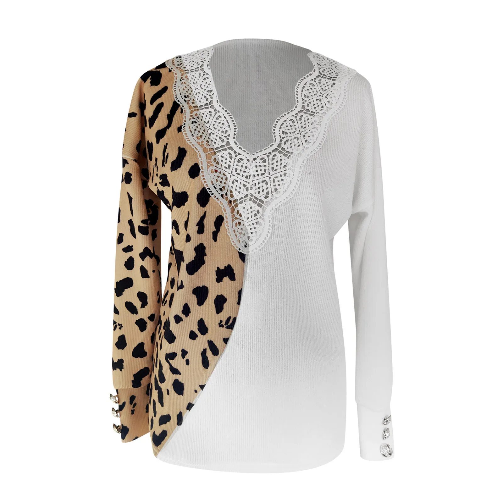 Свитер с леопардовым кружевом и принтом, Модный женский однотонный клетчатый сексуальный свитер с длинными рукавами, женские свитера для вечерние