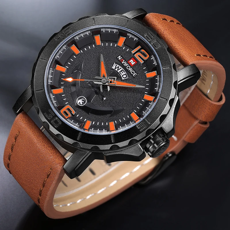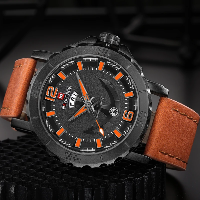 Часы наручные NAVIFORCE Мужские кварцевые, креативные Роскошные Брендовые повседневные водонепроницаемые в стиле милитари, с кожаным ремешком, с датой