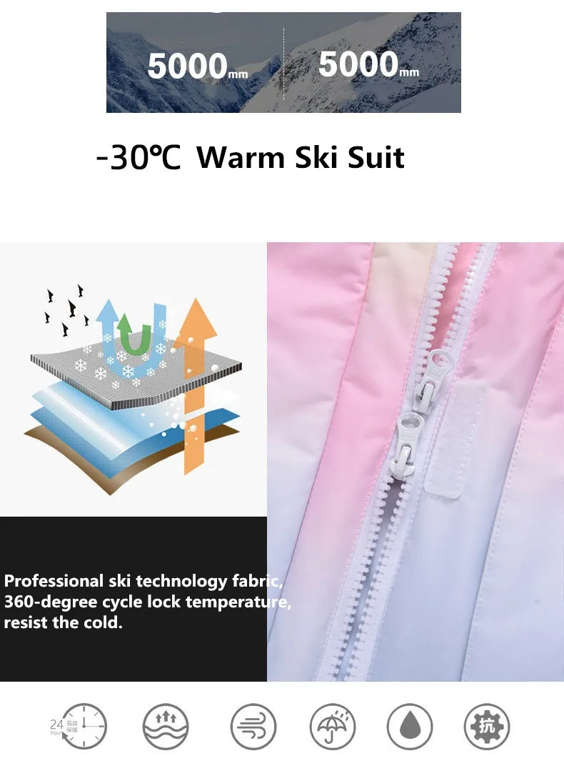 Лыжный костюм для женщин-35 градусов, ветрозащитная водонепроницаем...