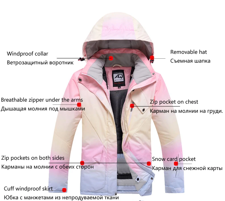 Лыжная одежда женская с капюшоном Толстая теплая водонепроницаемая ...