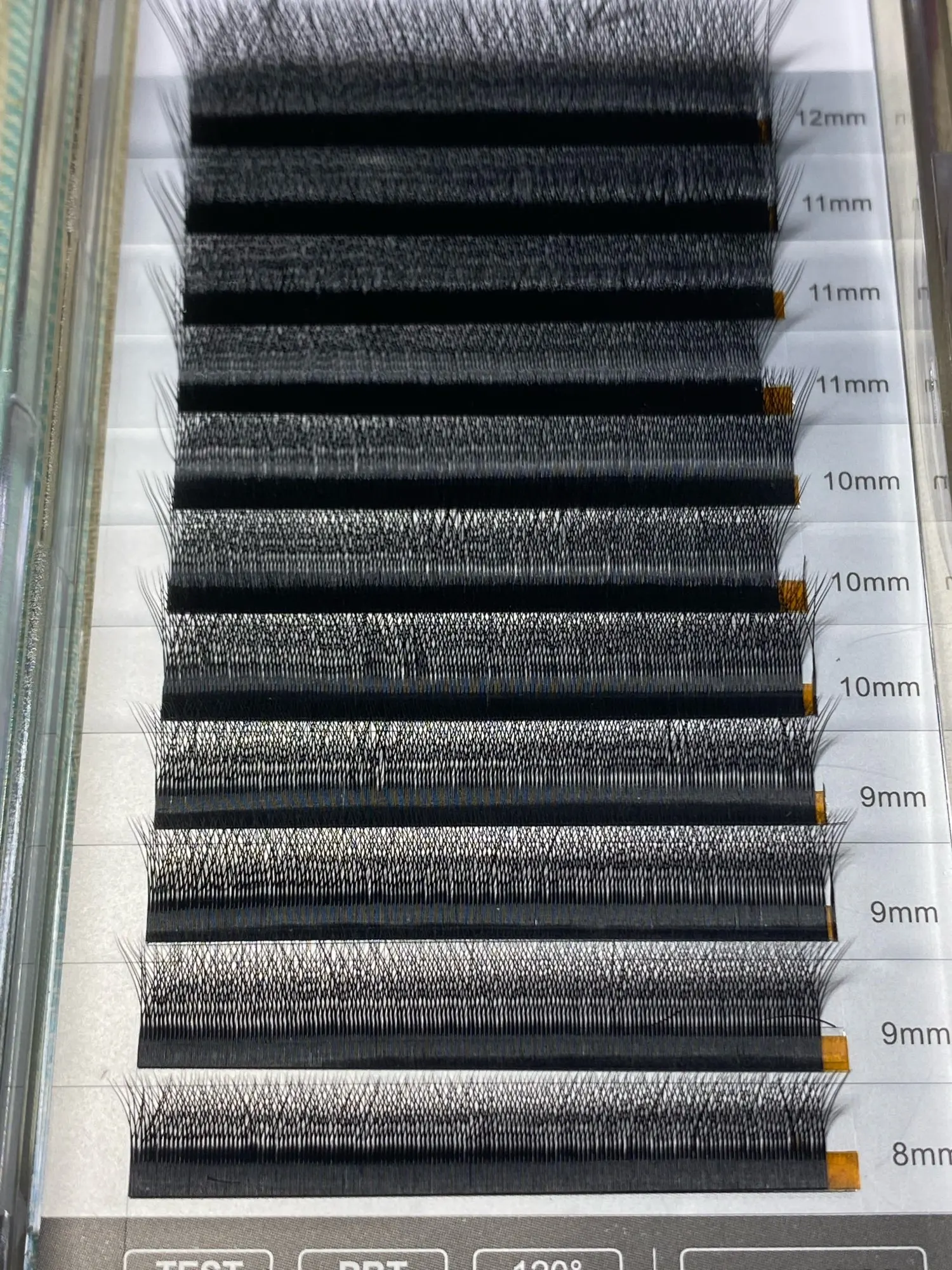 Реснички в принципе не плохие , хорошо отделяются друг от друга , не слипшиеся , относительно ровные данному типу ресниц, брала микс, больше всех понравилась длинна 12 в данном изгибе , остальные ну так себе если честно , хотелось бы конечно более подкручены , длины 9,10,11мм уж очень прямые для меня, хотя и указан изгиб С , но все же ) так же очень хочется другие длины увидеть 13,14 мм очень не хватает , и изгиба Д так же , прошу сделайте как можно скорее ))