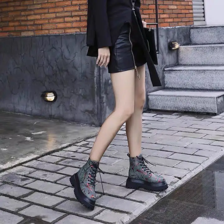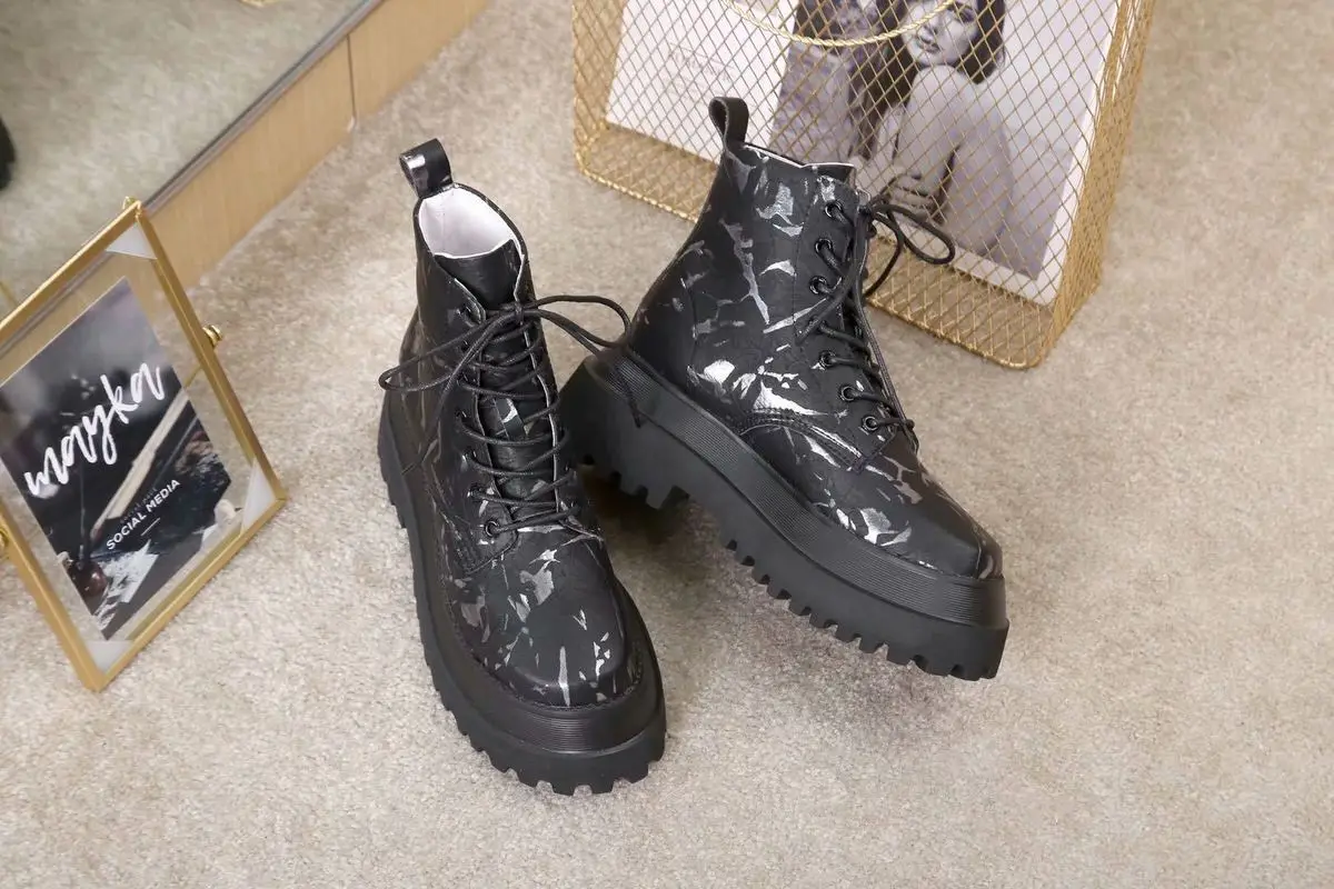 Женские зимние ботильоны на платформе и каблуке; Женская обувь на шнуровке; Ботинки Martin; Брендовая Дизайнерская кожаная женская обувь на шнуровке