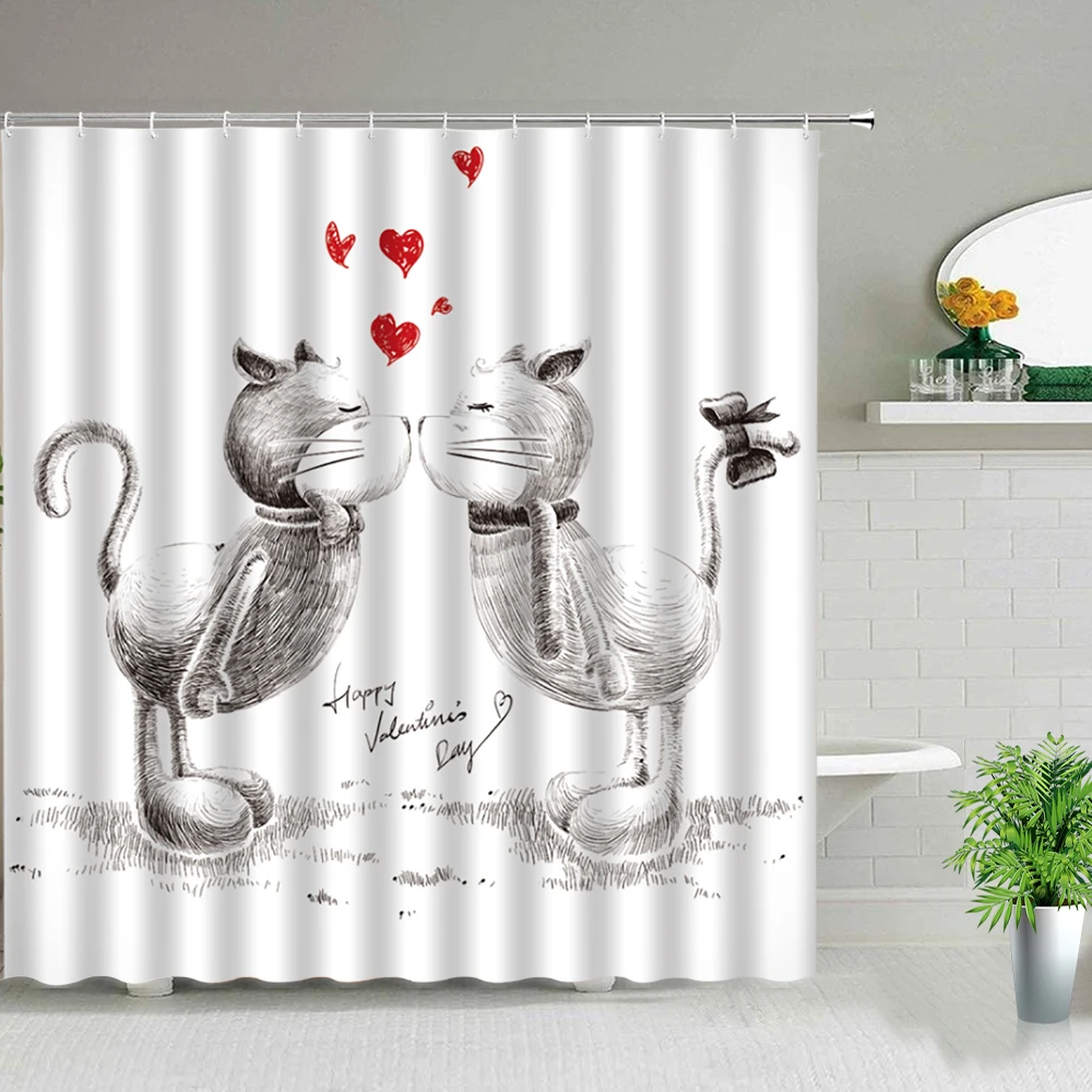 Занавеска для душа, из полиэстера, водостойкая, с принтом в виде кота