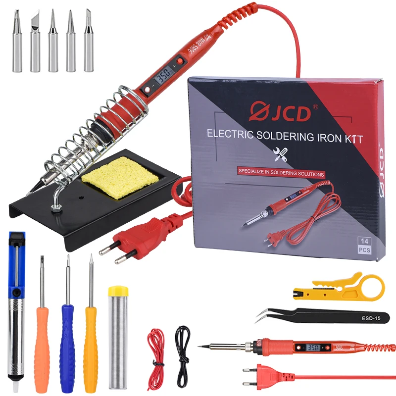 JCD Набор паяльника с регулируемой температурой, 220 В, 80 Вт, паяльные сварочные инструменты с ЖК дисплеем, керамические паяльные нагревательные жало, насос для распайки