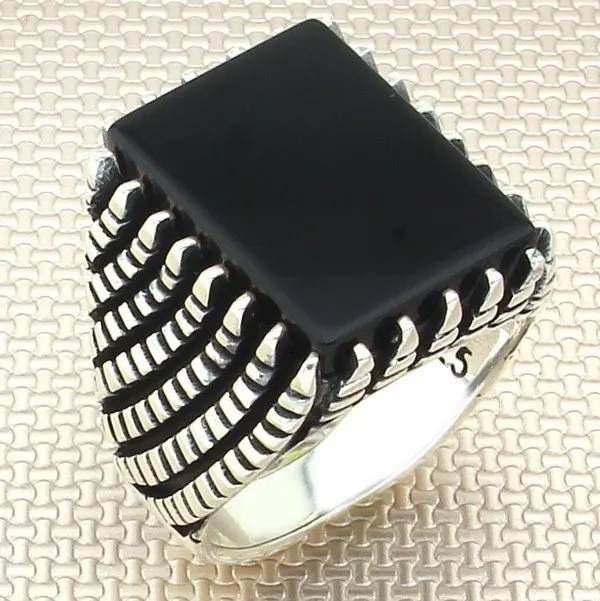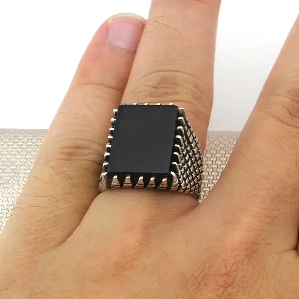 Классическое мужское серебряное кольцо с квадратным черным ониксом, Сделано в Турции
