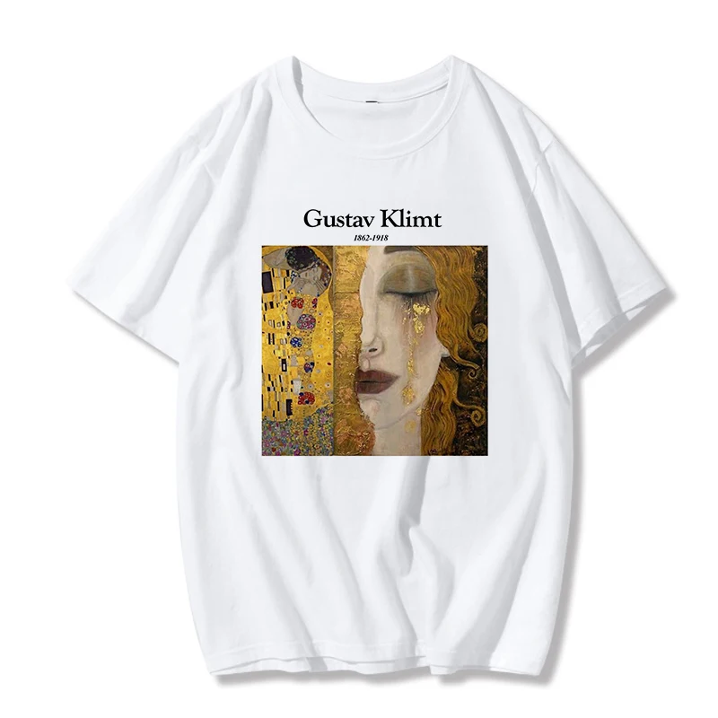 Футболка с надписью Gustav Klimt женская, Повседневная рубашка в стиле Харадзюку, модный винтажный топ с рисунком маслом, лето