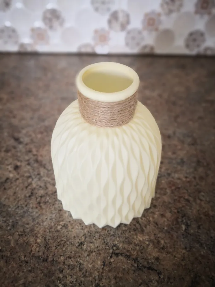 Это не ваза, а скорее декор. Вазочка пластиковая, снизу дырочки. Для сухоцветов например