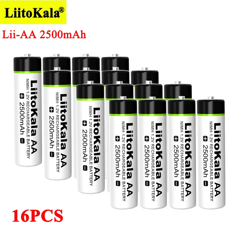 16 шт. умное устройство для зарядки никель-металлогидридных аккумуляторов от компании Liitokala: 1,2 V AA 2500 мАч металл-гидридных или никель Перезаряжаемые батареи aa для Температура пистолет дистанционный пульт мышь игрушка на батареях