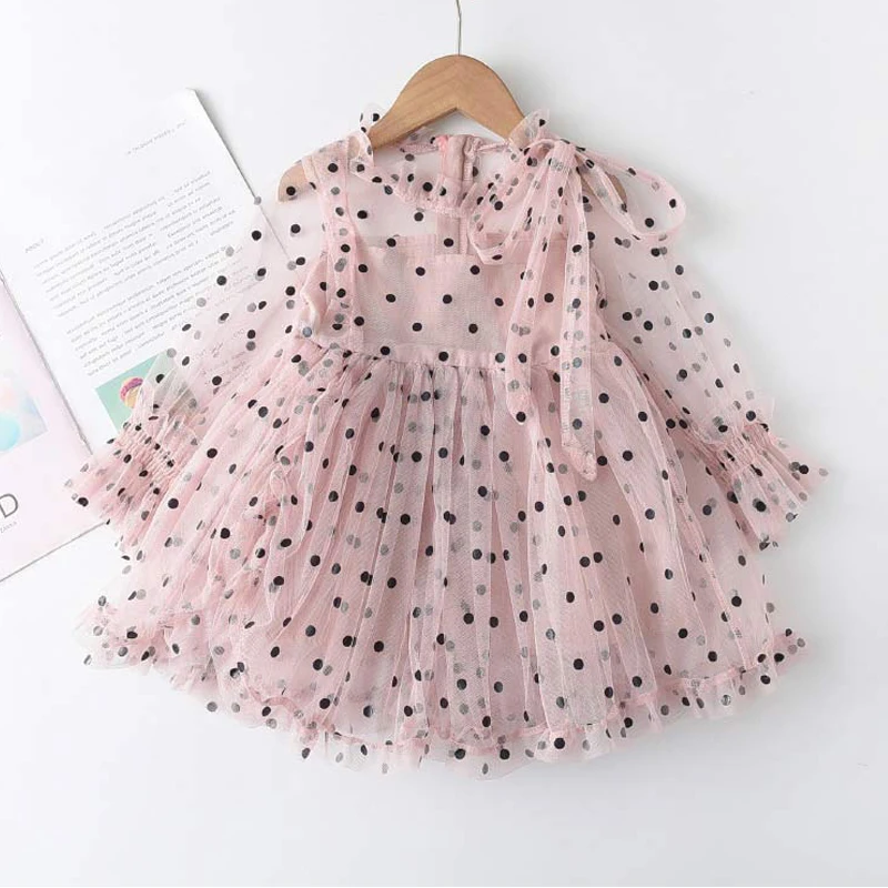 MudiPandaДетские платья в горошек 2021 г. Модные сетчатые наряды с длинными рукавами для девочек платье принцессы Весенняя Милая Одежда от 2 до 6 лет