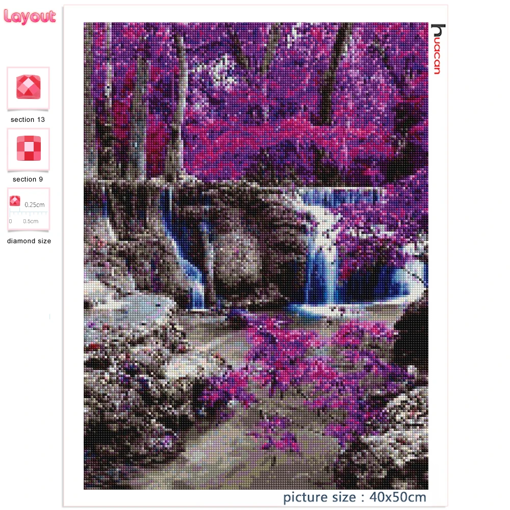 Алмазная вышивка Huacan с нубуковым пейзажем, вышивка крестиком Водопад, мозаика из страз с лавандой, подарок для женщин
