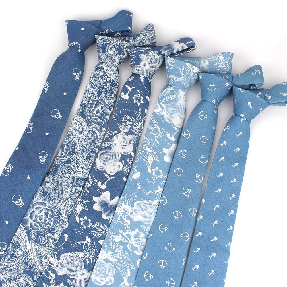Мужские узкие джинсовые Галстуки, деловые повседневные Узкие галстуки с принтом на свадьбу, костюмы из денима