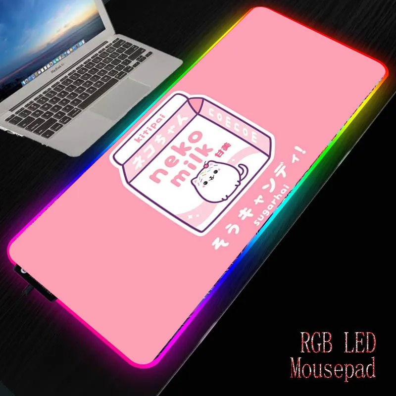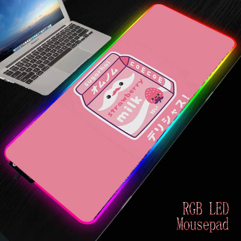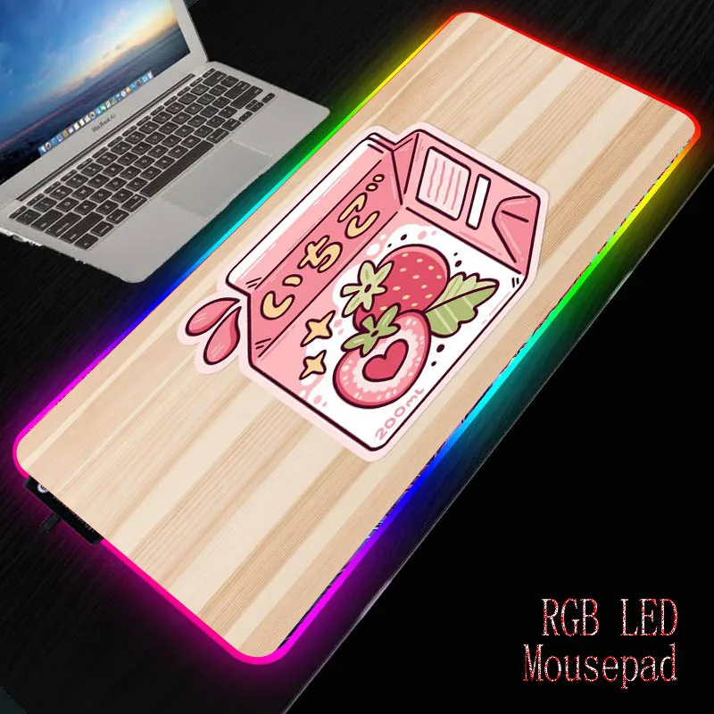 Милые японские Клубничные молочные RGB светодиодсветодиодный коврики для мыши, компьютер, ноутбук, аниме, подсветка, коврик для мыши, большой коврик для мыши, коврик для клавиатуры XXL
