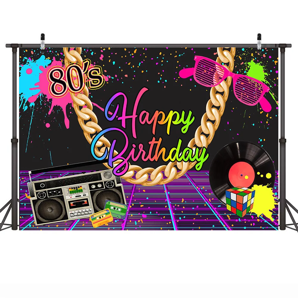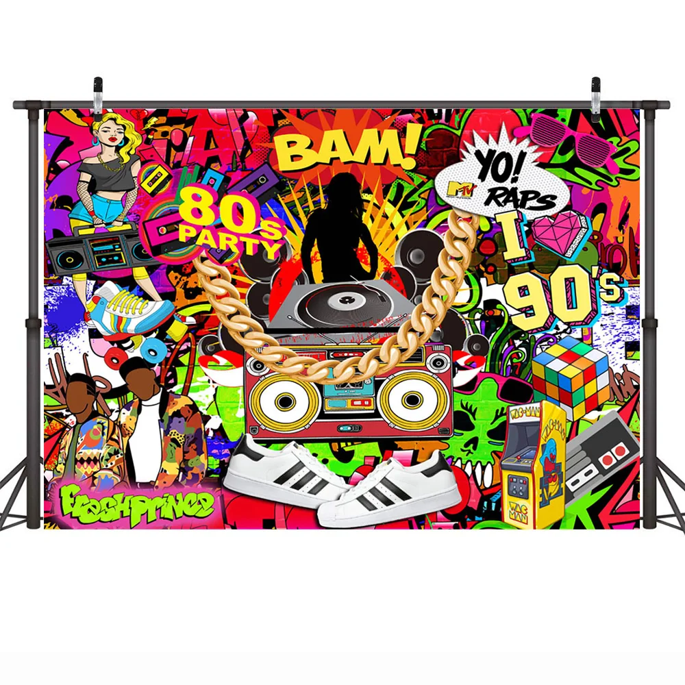 Тематический фон 90-х для дня рождения в стиле хип-хоп 80-х, фон для дискотеки, вечеринки, светится граффити, роспись, всплеск, фотосессия, ретро фотосессия