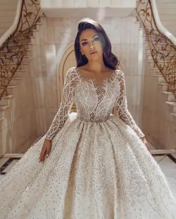 Свадебное платье с юбкой годе, кружевное, с длинными рукавами, расшитым бисером, из Саудовской Аравии, размера плюс