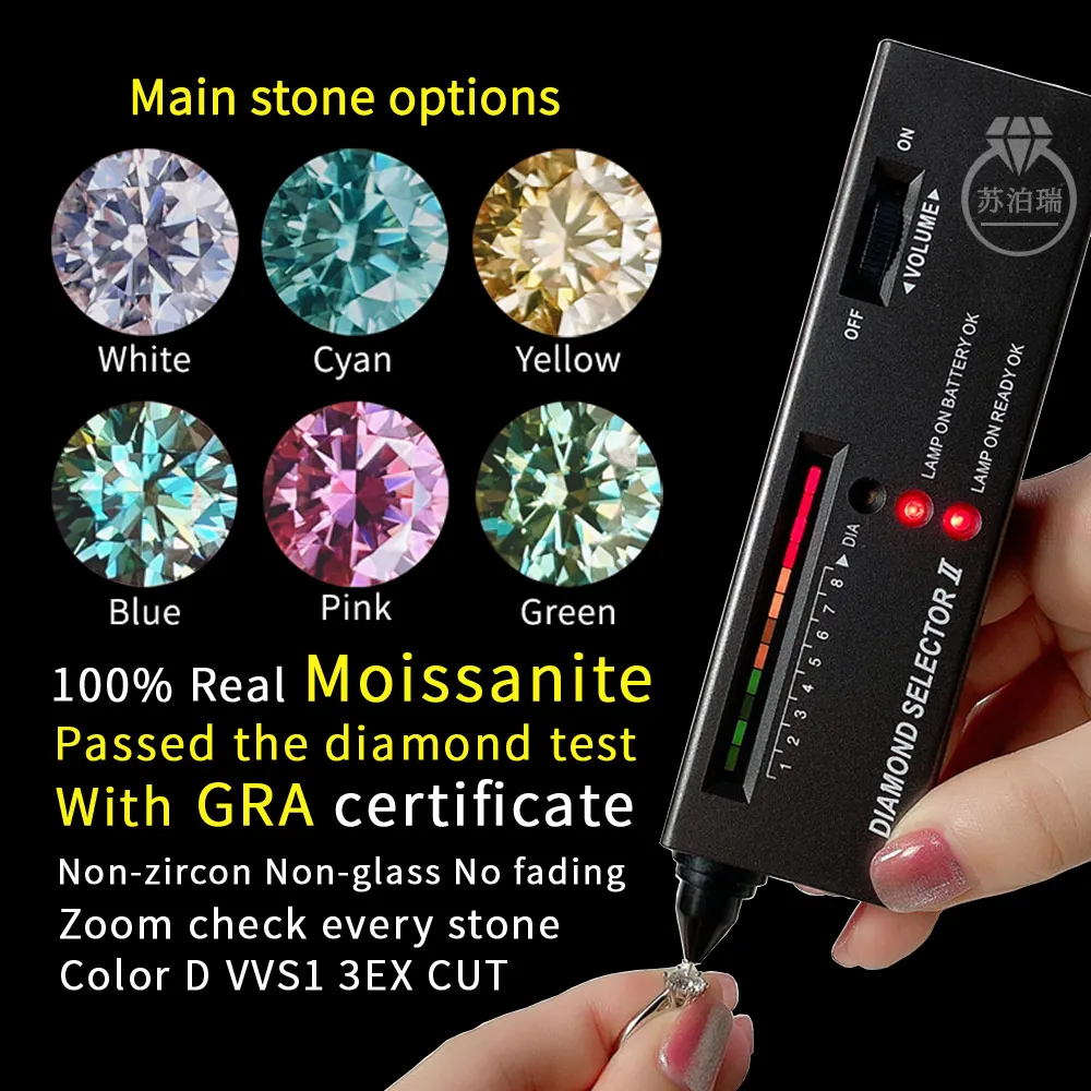 1-2 карат муассанит Кольца цвет D VVS синий розовый желтый зеленый ...
