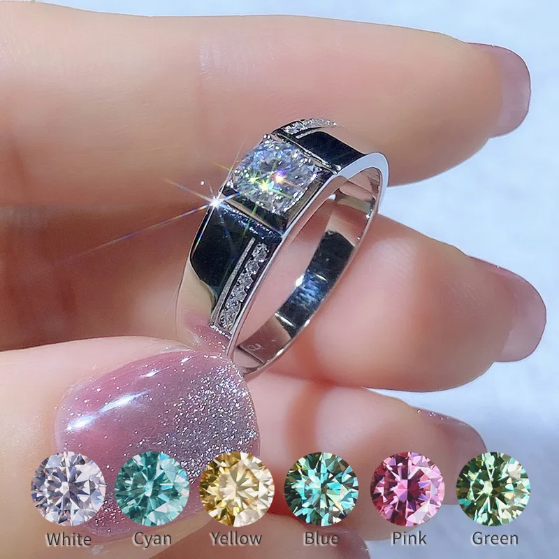 1-3CT кольцо из настоящего муассанита для мужчин, классический цвет...