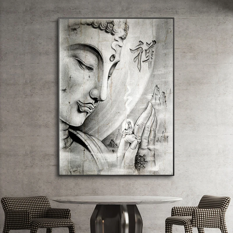 Абстрактная черно-белая статуя Будды, Картина на холсте, постеры и принты, Настенная картина, украшение для дома, декор для комнаты