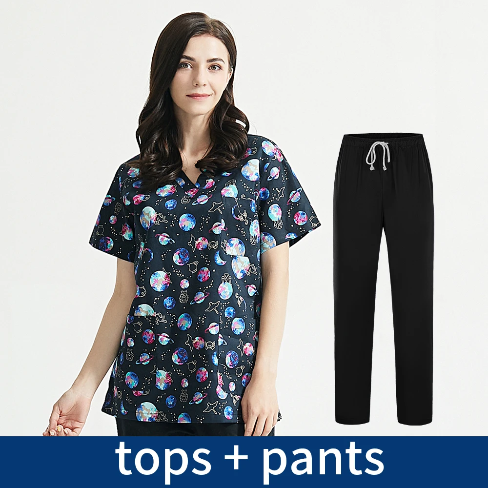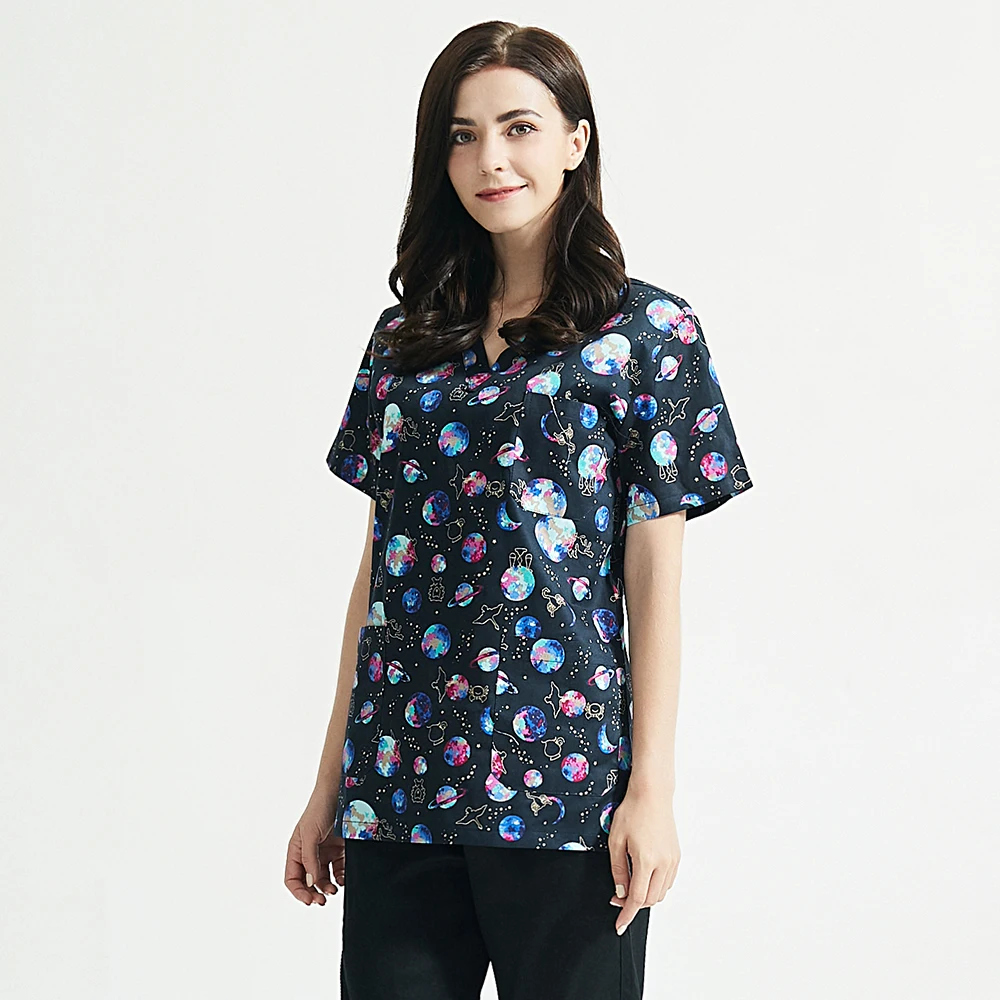 Дышащая униформа для ухода за домашними животными с принтом, рабочая одежда для салона красоты, экспериментальные скрабы, топы унисекс, топы с V-образным вырезом