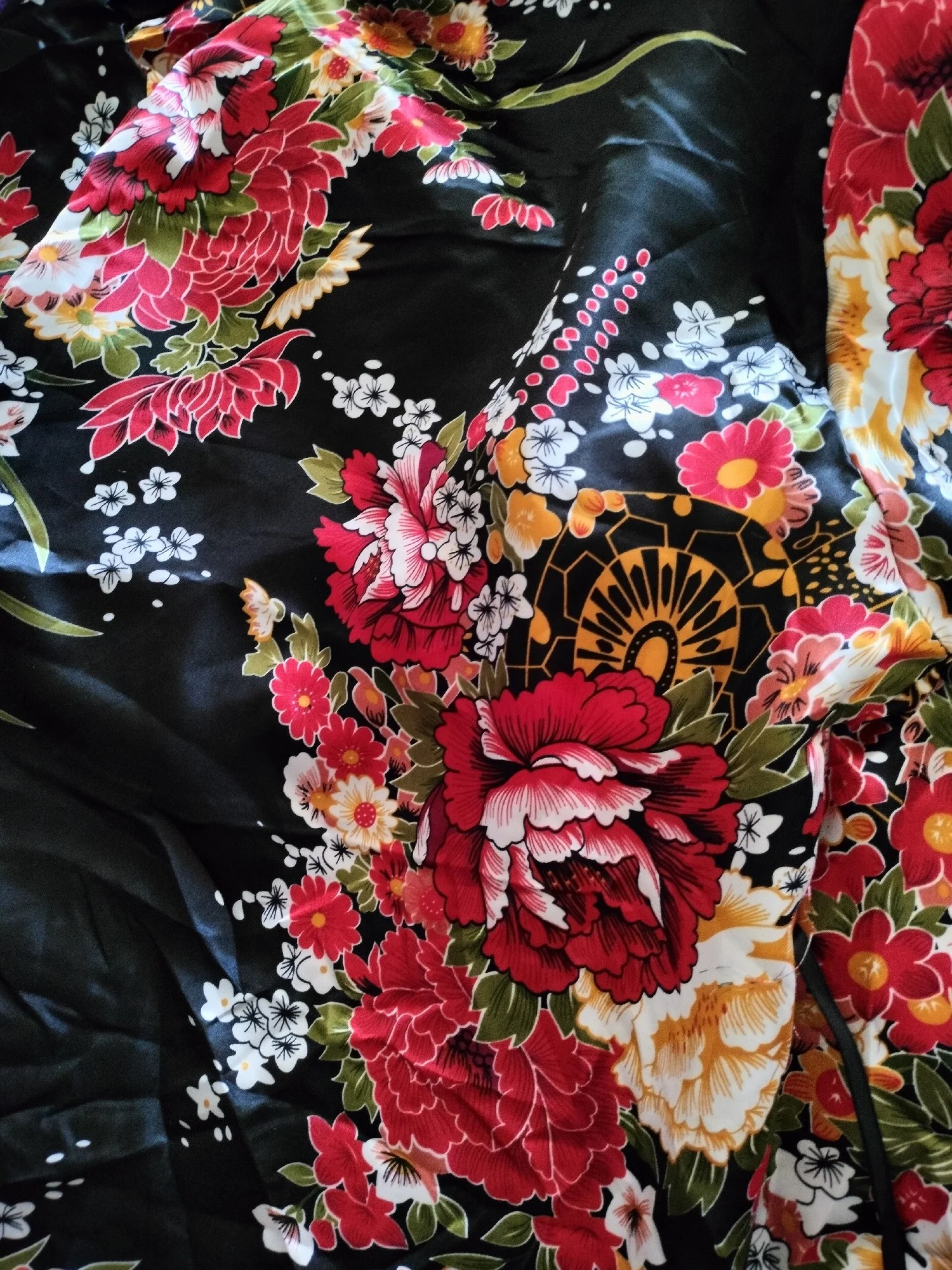 Халат женский, короткий, в японском стиле, с цветочным принтом