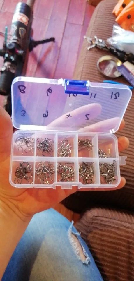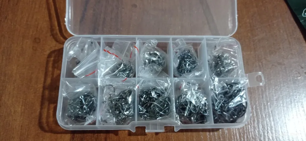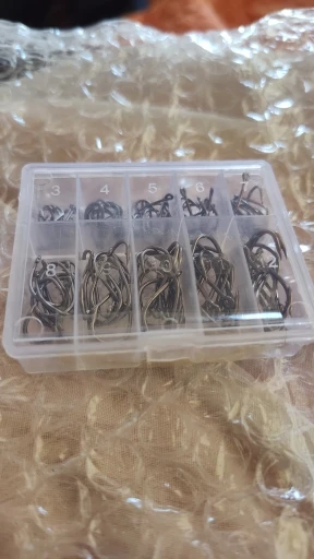 Получил в течение трех недель через курьерскую службу, первый раз от Ali express. Я обнаружил, что внутри коробки каждый размер упакован отдельно. Самые маленькие размеры предназначены только для маленьких рыбок. Острота достаточно хорошая. Я узнаю на следующей осени сопротивление к Карпу.