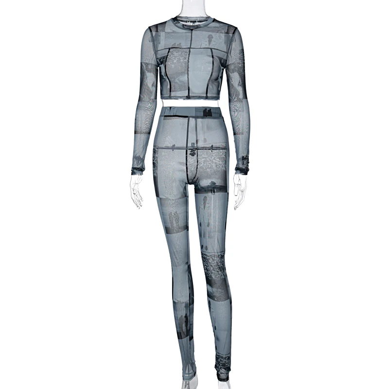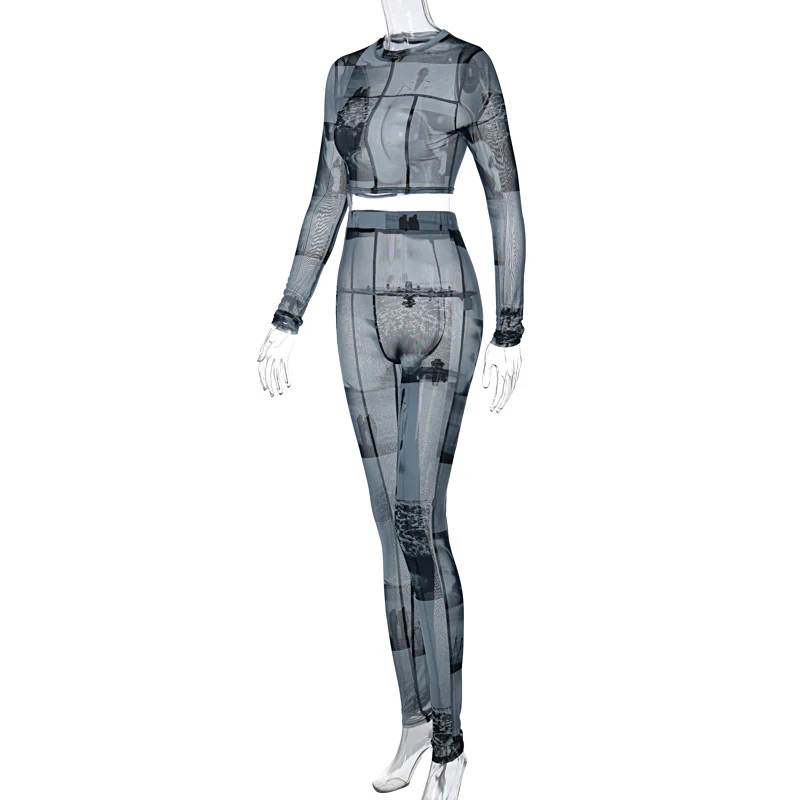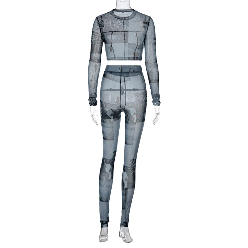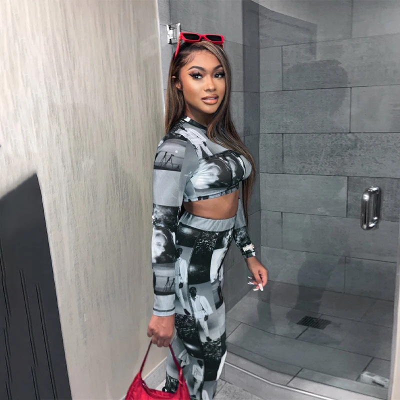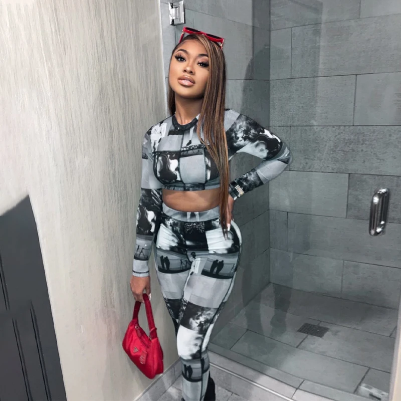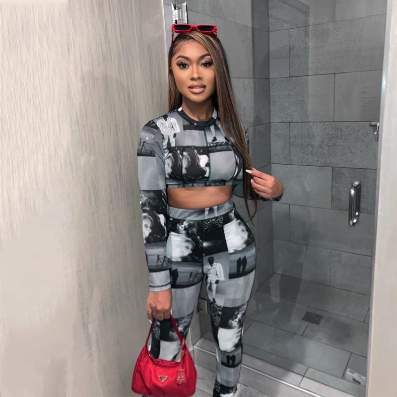 Женский спортивный костюм Hugcitar, футболка с длинным рукавом и винтажным принтом, леггинсы, комплект из 2 предметов, Осень-зима 2020
