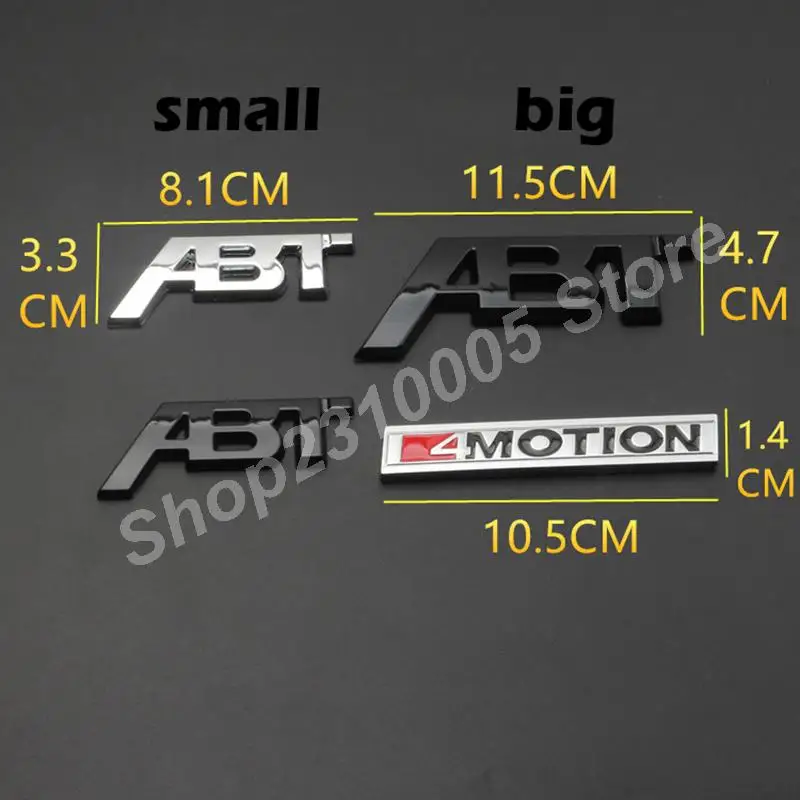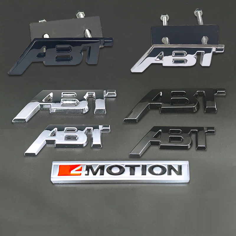 Эмблема с буквами Для ABT, 4 движущихся автомобиля, передняя решетка радиатора, зеркальная боковая наклейка с логотипом для Audi VW, большая, маленькая, черная, хромированная