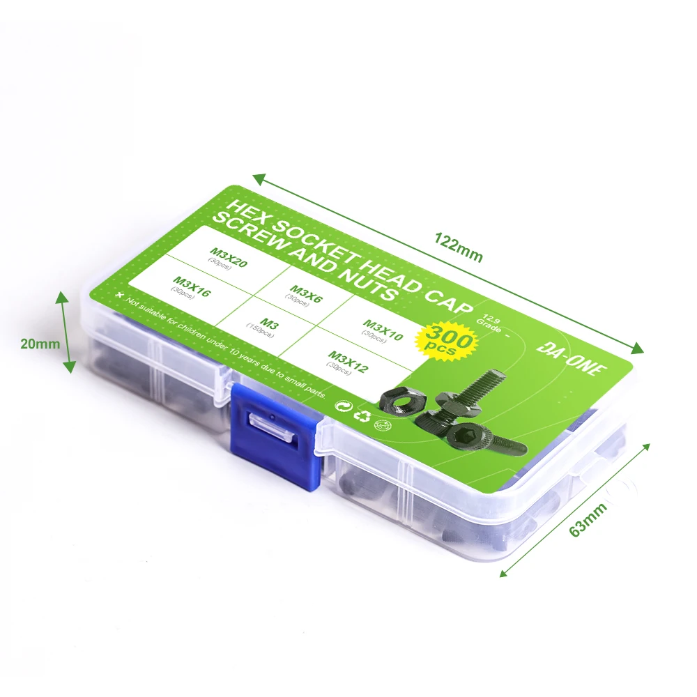 DA-ONE 300 шт. M3 12.9 класс углеродистой стали черный шестигранный болт с шестигранной головкой и шестигранной гайкой набор Din912