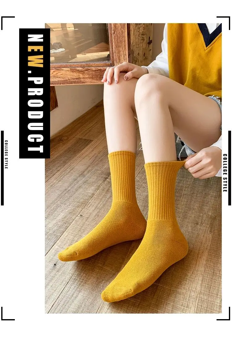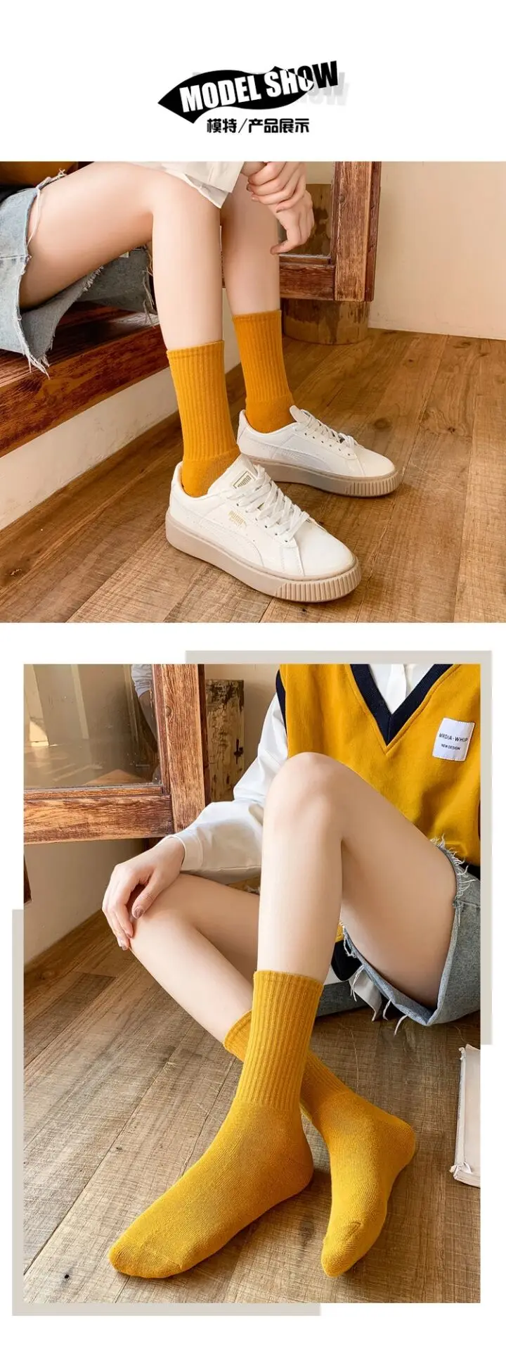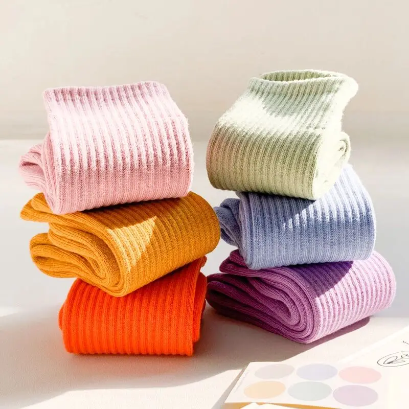 Носки женские осенне-зимние, бархатные плотные теплые однотонные женские носки, высокие эластичные носки-петли, носки со складками