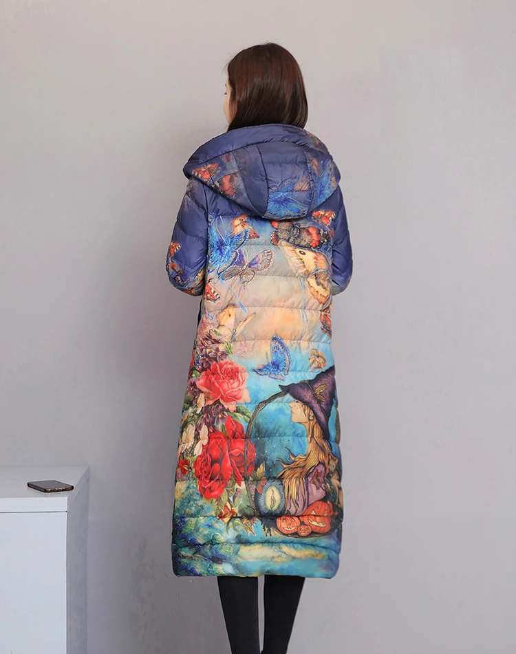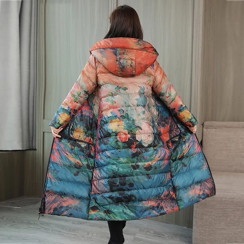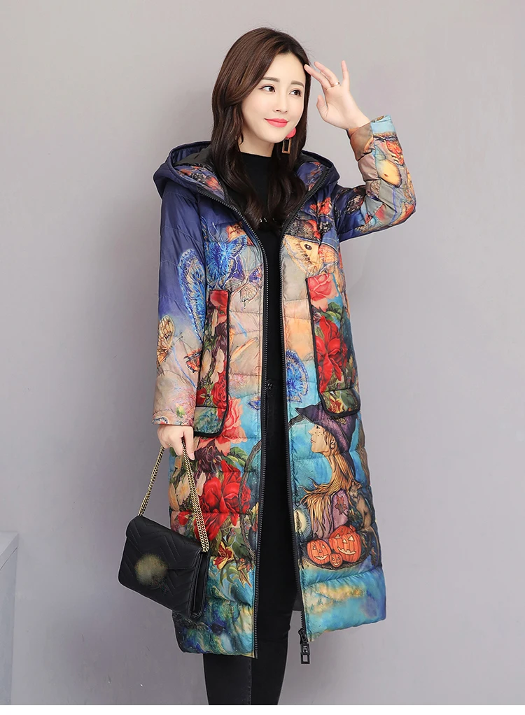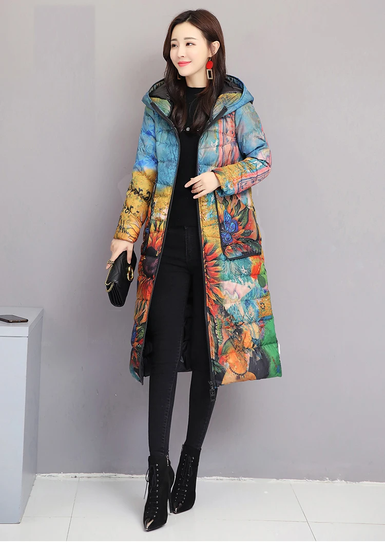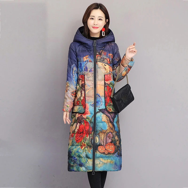 Женский пуховик, зимнее пальто с цветочным рисунком, длинная парка ...
