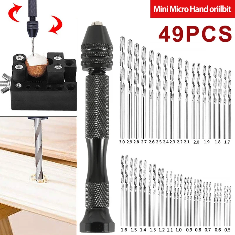 49 шт. 0,2-3,4 мм ручная дрель мини Алюминий ручной сверло ювелирны...