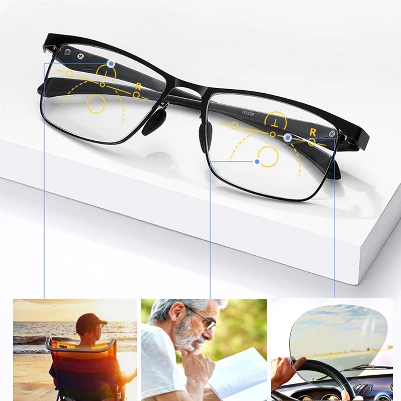 Очки для чтения TR90 мужские, готовые прогрессивные многофокальные фотохромные, с защитой от сисветильник, в металлической оправе