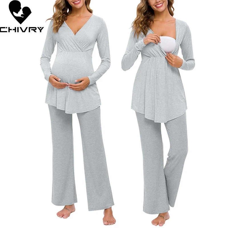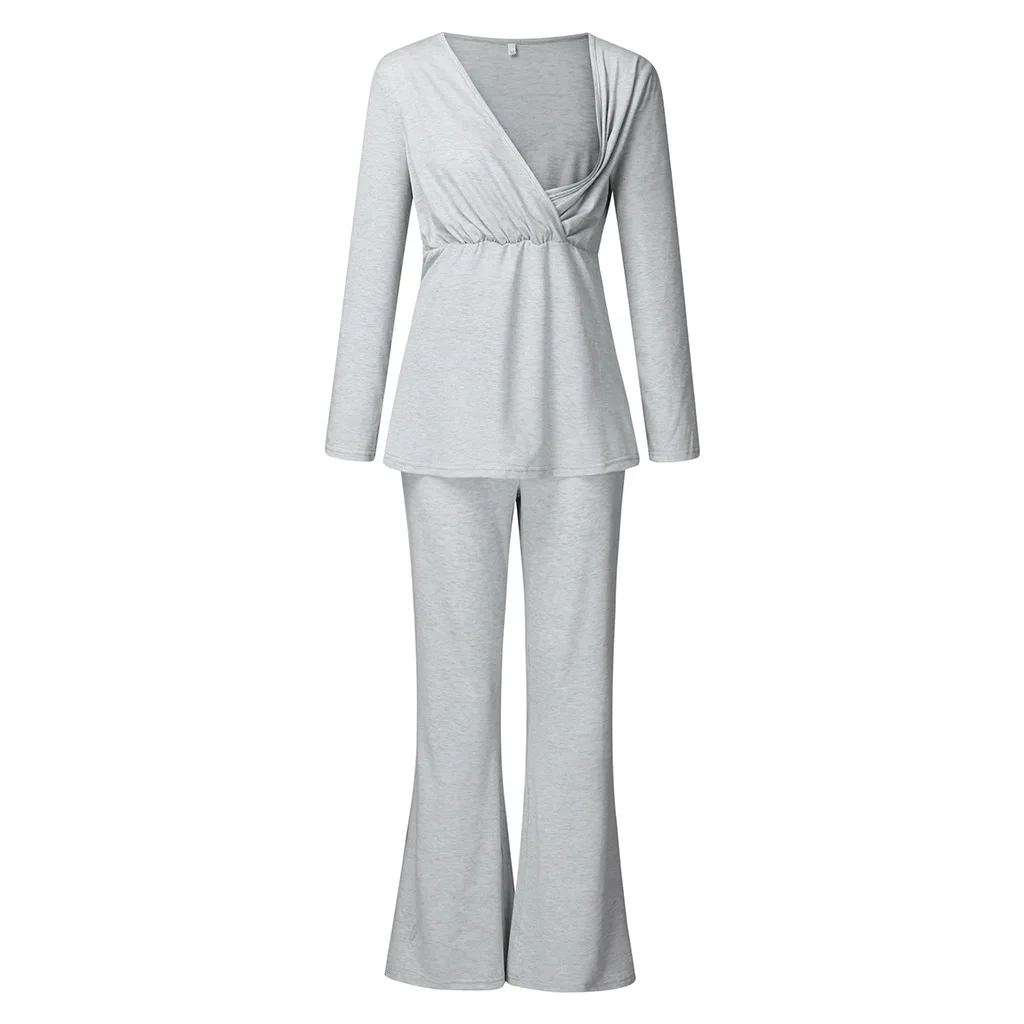 Комплект пижамный для беременных и кормящих женщин, футболка с длинным рукавом и регулируемые штаны