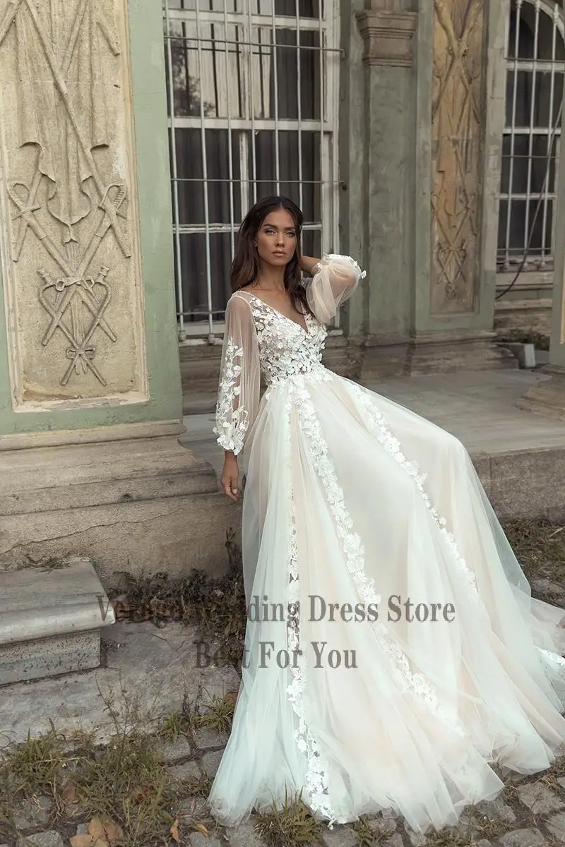 LORIE пляжные свадебные платья с длинным рукавом и V-образным вырез...