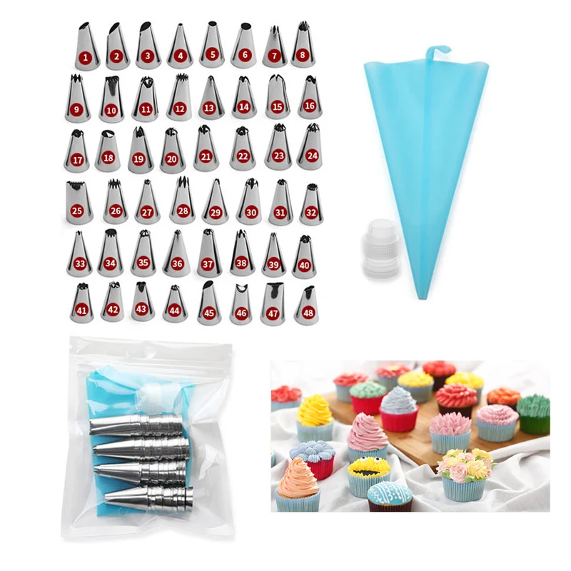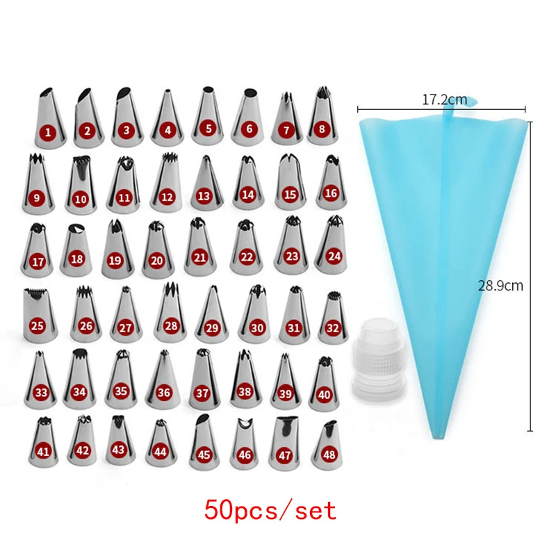 50 шт. инструменты для украшения торта Кондитерские насадки 1 шт. крем многоразовый кондитерский сумки через плечо + 48 глазури трубопроводов сопла Кухня торты выпечка поставки
