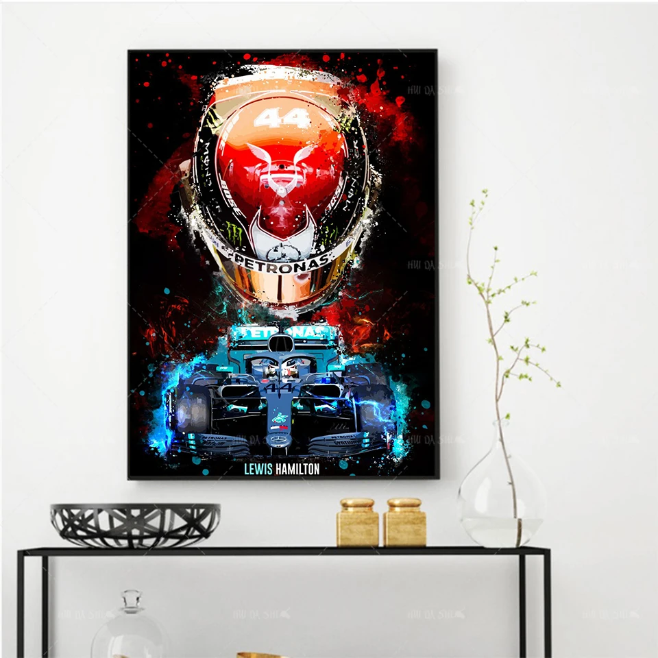Абстрактный постер Льюиса Гамильтона F1, Картина на холсте с изображением гоночного автомобиля, Настенная картина с HD принтом, декоративные рамки для гостиной