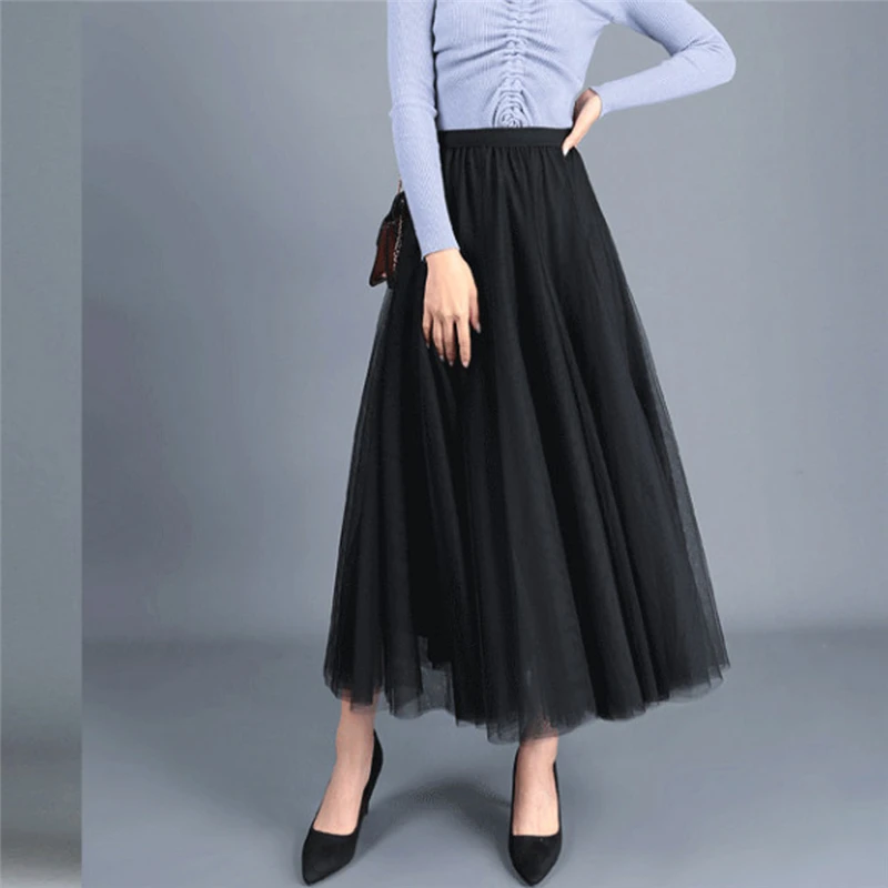2020 горячая Распродажа Для женщин юбка Высокая Талия, с кружевным плетением, длинная юбка из тюля Женские многослойная юбка макси