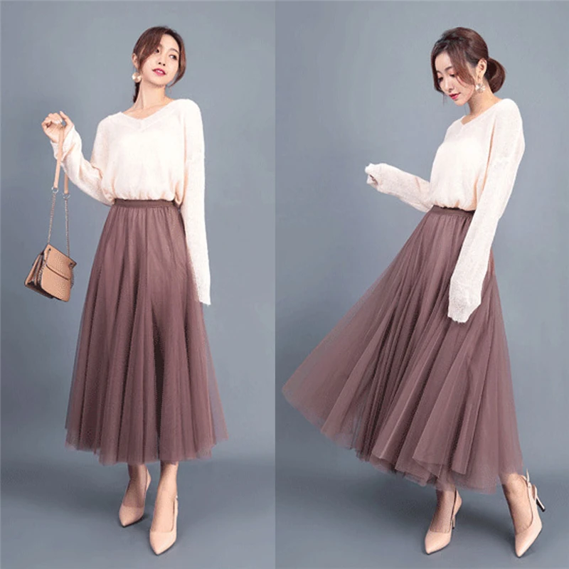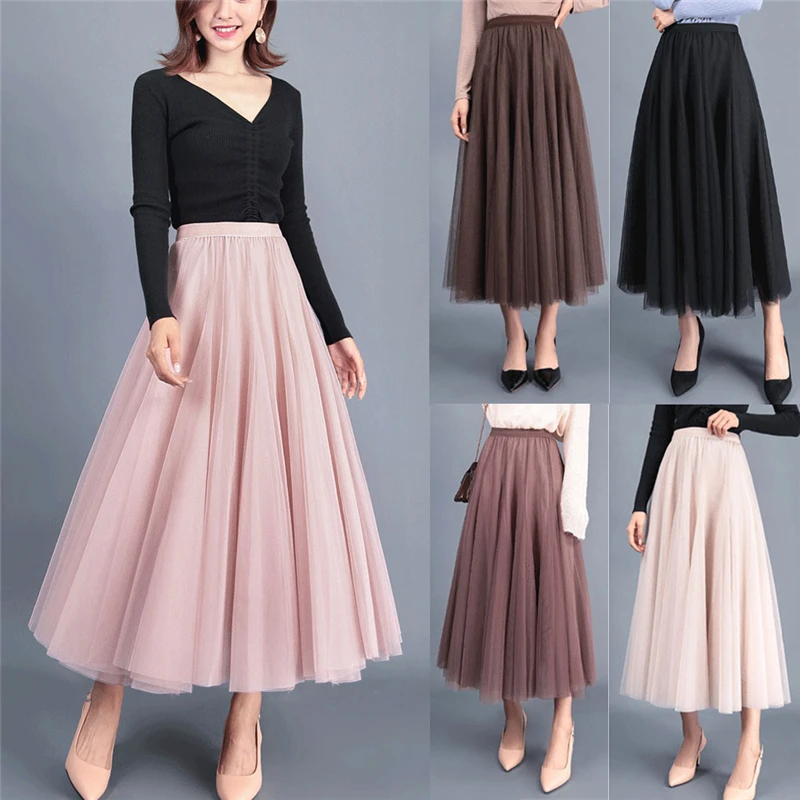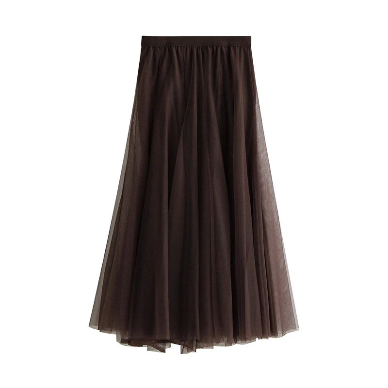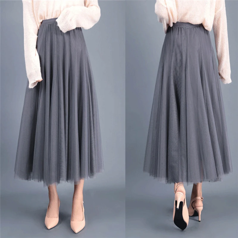 Женская длинная юбка, элегантная юбка макси из тюля, серого, коричн...